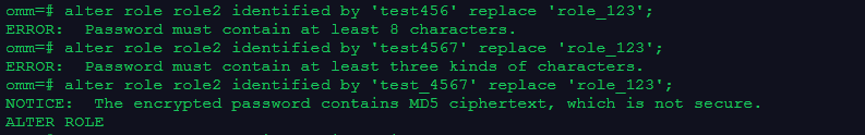 alter role role2 identified by 'test_4567' replace 'role_123';