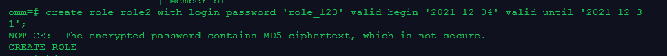 create role role2 with login password 'role_123' valid begin '2021-12-04' valid until '2021-12-31';