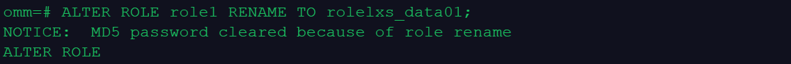 omm=# ALTER ROLE role1 RENAME TO rolelxs_data01;