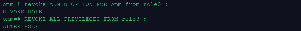 omm=# revoke ADMIN OPTION FOR omm from role3 ;