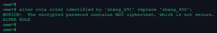 alter role role2 identified by 'zhang_891' replace 'zhang_456';