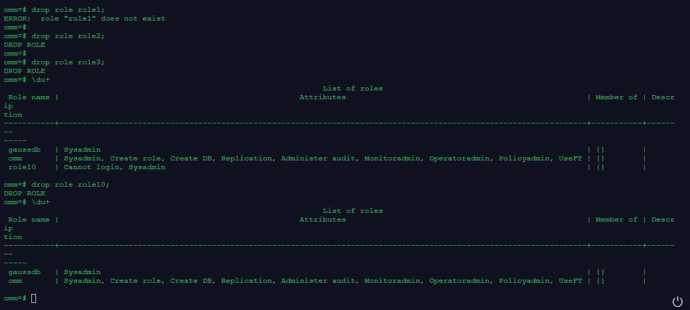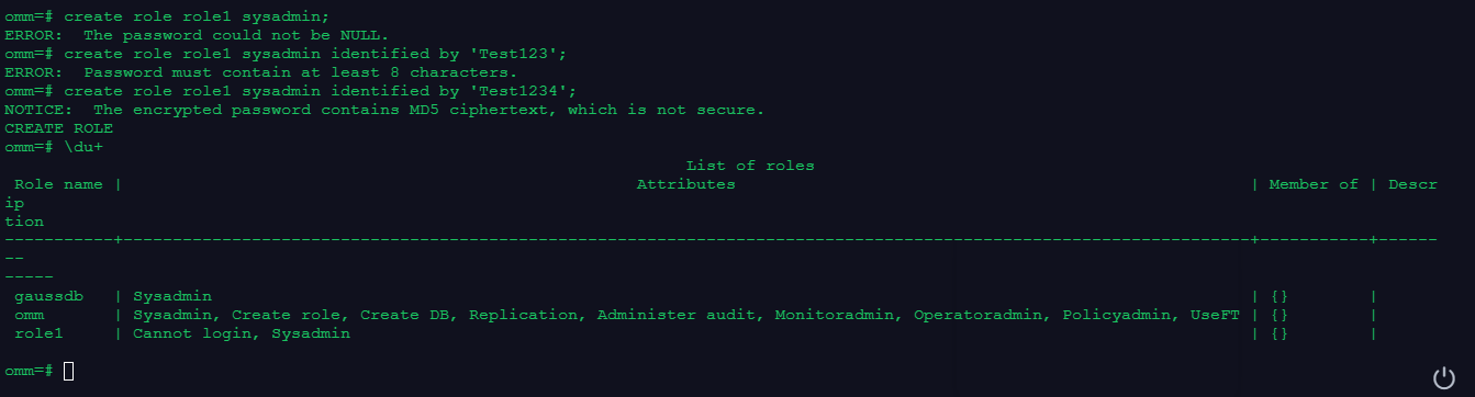 作业1:创建角色role1为系统管理员, role2指定生效日期, role3具有LOGIN属性