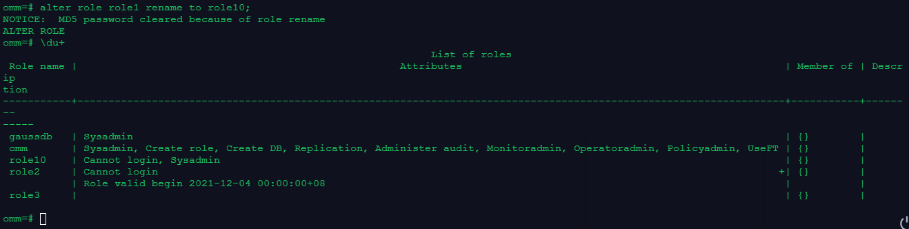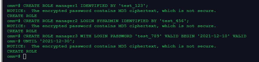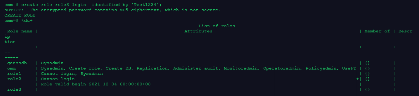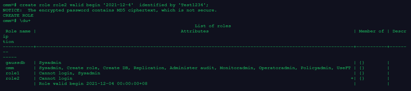 create role role2 valid begin '2021-12-4' identified by 'Test1234';