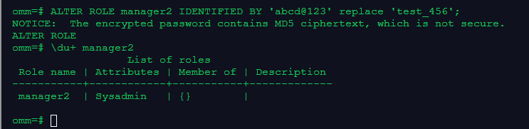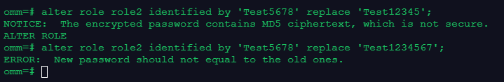alter role role2 identified by 'Test5678' replace 'Test12345';