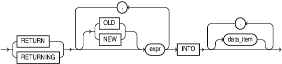 当对多行进行操作时,带有returning_clause 的DML 语句从涉及绑定数组中受影响的行的表达式、rowid 和REF 返回值。