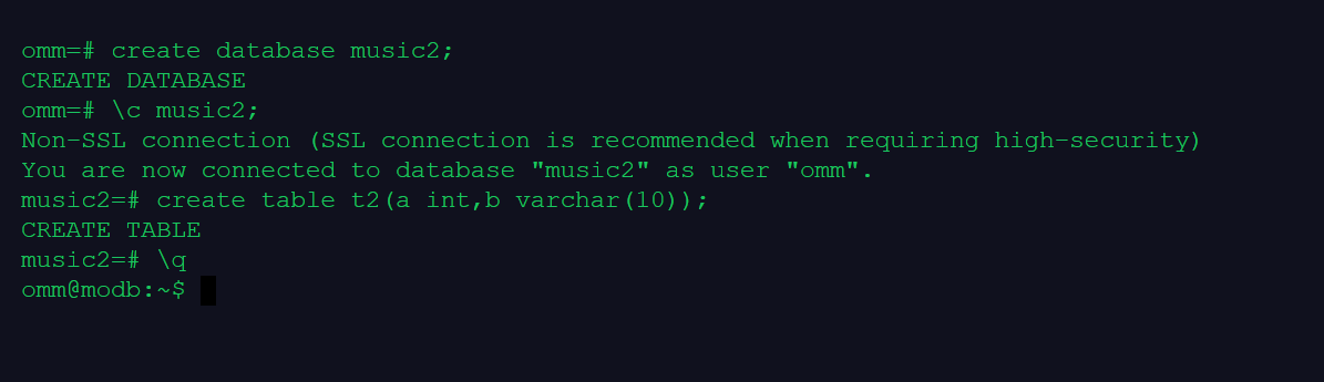 su - omm gsql -r