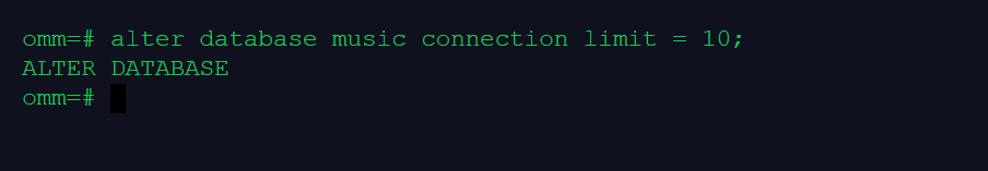 ALTER DATABASE music CONNECTION LIMIT= 10;