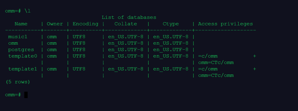 DROP DATABASE music1;