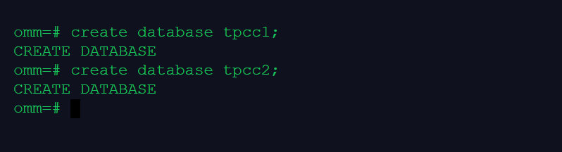 1.分别创建名为tpcc1和tpcc2的数据库