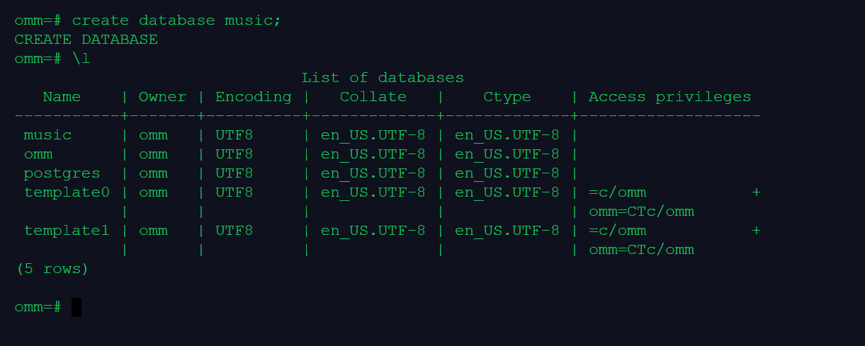 CREATE DATABASE music;