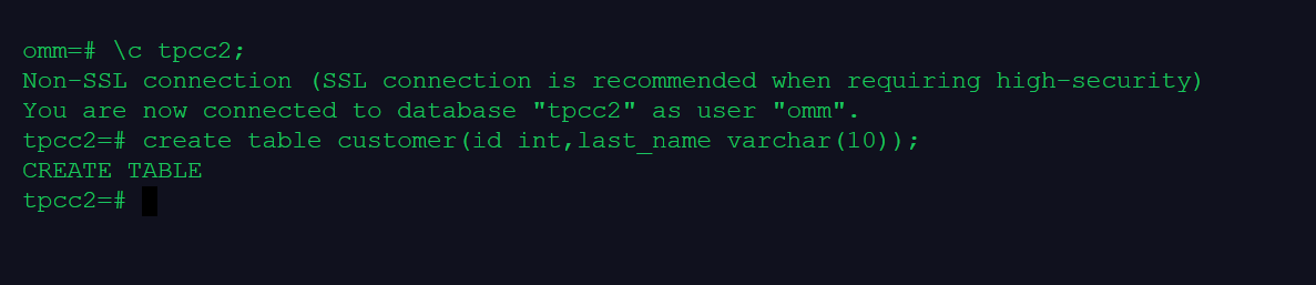 \c tpcc2;create table customer(id int,last_name varchar(10));