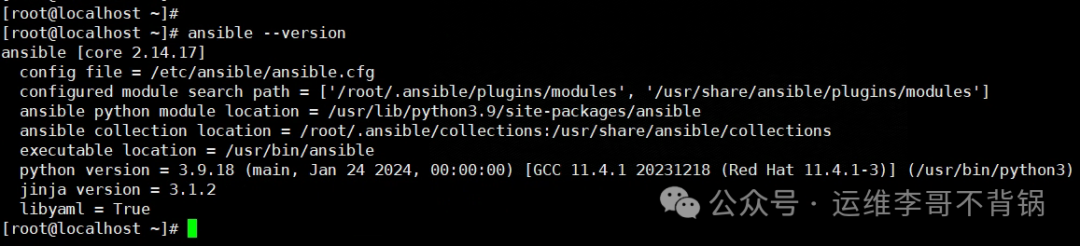 在完成 Ansible 的安装和环境配置后,执行第一个命令以验证 Ansible 是否正常工作。