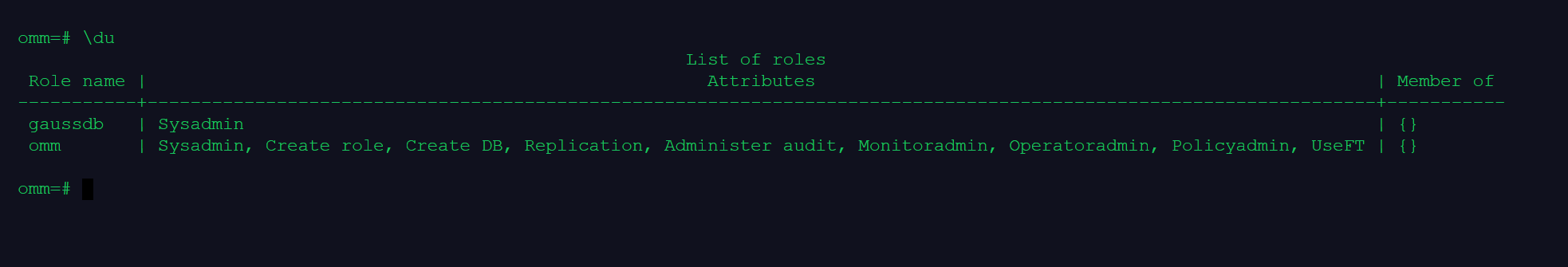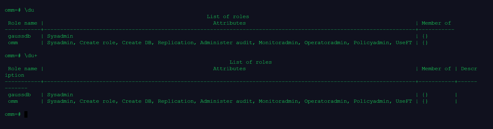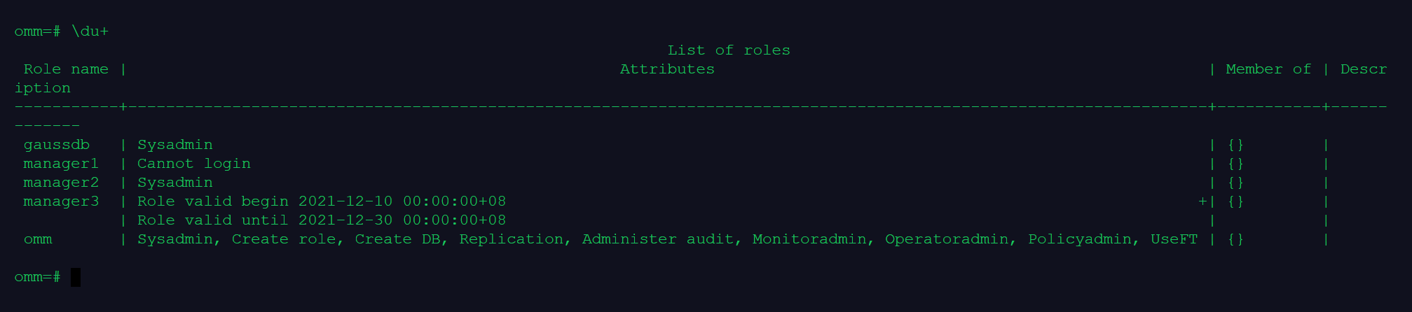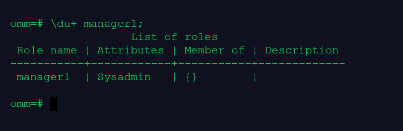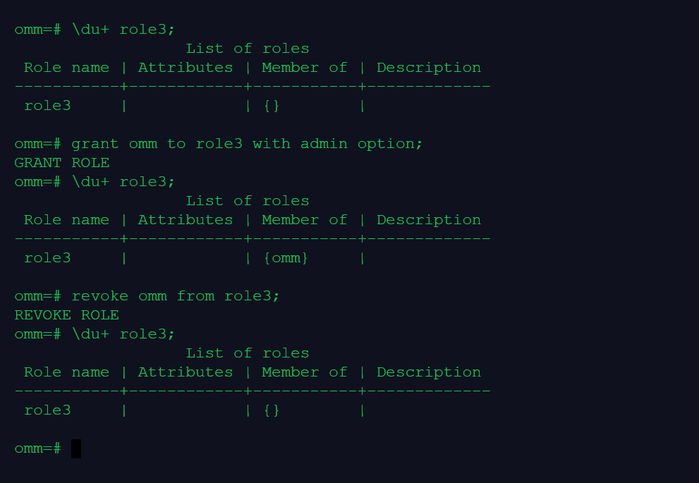 \du+ role3;grant omm to role3 with admin option;\du+ role3;