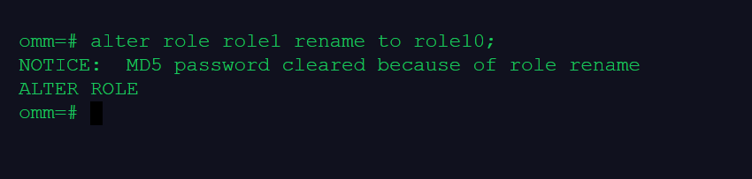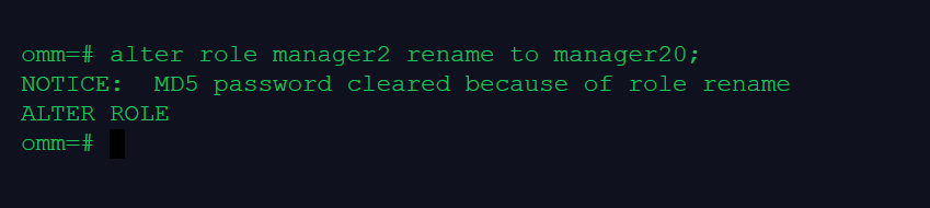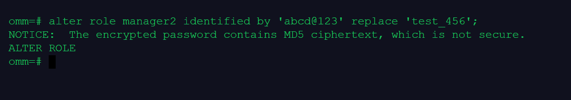 ALTER ROLE manager2 IDENTIFIED BY 'abcd@123' replace 'test_456';