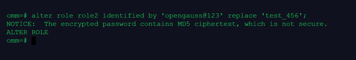 alter role role2 identified by 'opengauss@123' replace 'test_456';