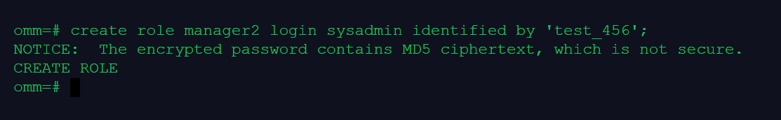 CREATE ROLE manager2 LOGIN SYSADMIN IDENTIFIED BY 'test_456';