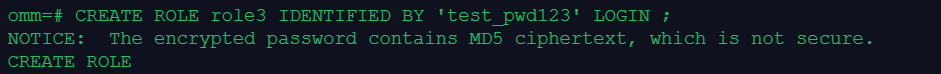 CREATE ROLE role3 IDENTIFIED BY 'test_pwd123' LOGIN ;