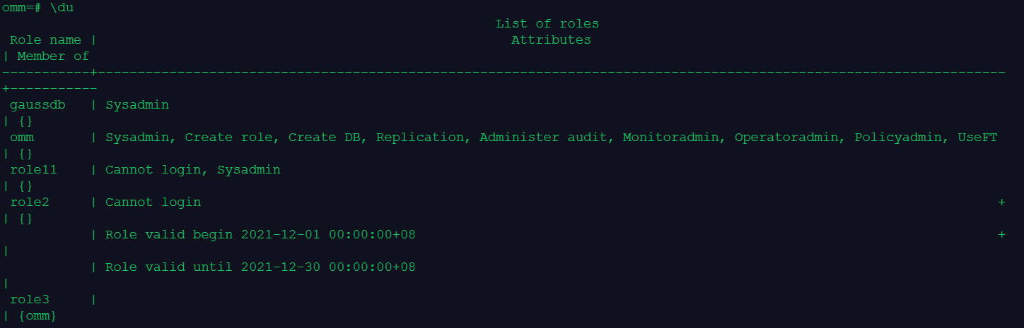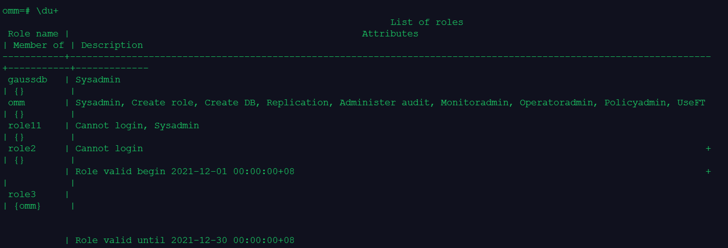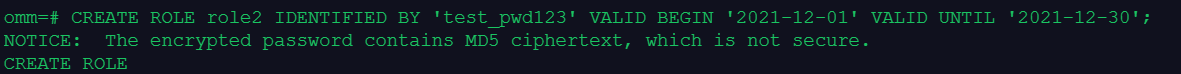 CREATE ROLE role2 IDENTIFIED BY 'test_pwd123' VALID BEGIN '2021-12-01' VALID UNTIL '2021-12-30';