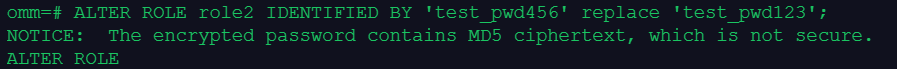 ALTER ROLE role2 IDENTIFIED BY 'test_pwd456' replace 'test_pwd123';