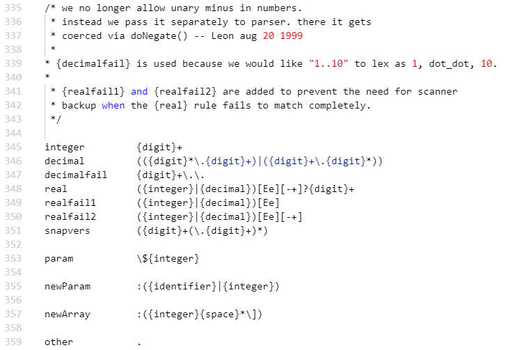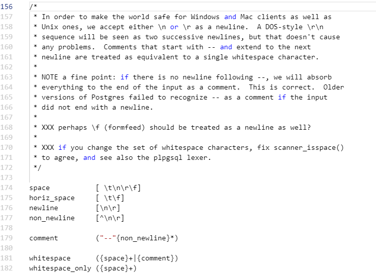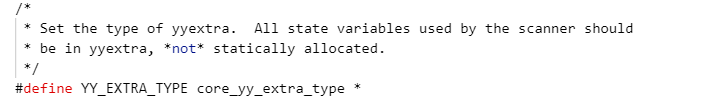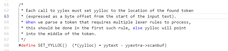 从flex代码中的定义部分对比我之前自己写的类C语言felx代码中的定义部分来看,明显体现出更多细节。Opengauss源码注释中写的内容看出能为了为了更好的体验他们增加了许多细节的东西比如换行用\f(?没见过)。
