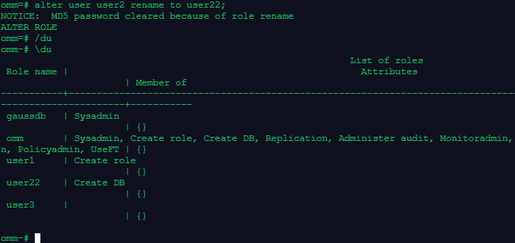 学习openGauss创建用户、修改用户属性、更改用户权限和删除用户