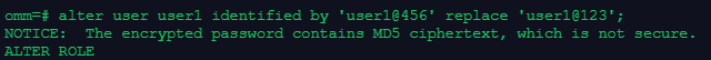 alter user user1 identified by 'user1@456' replace 'user1@123';
