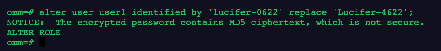 alter user user1 identified by 'lucifer-0622' replace 'Lucifer-4622';
