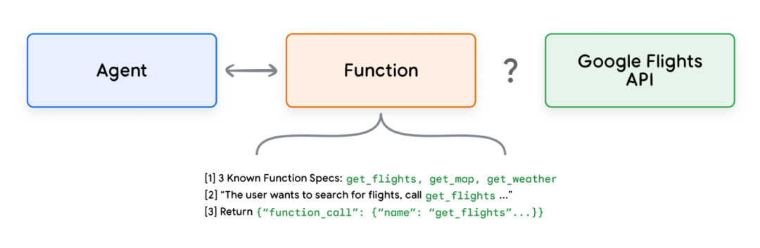 函数与扩展的主要区别在于,函数和智能体不会直接与 Google Flights API 交互。那么,API 调用究竟是如何实现的?