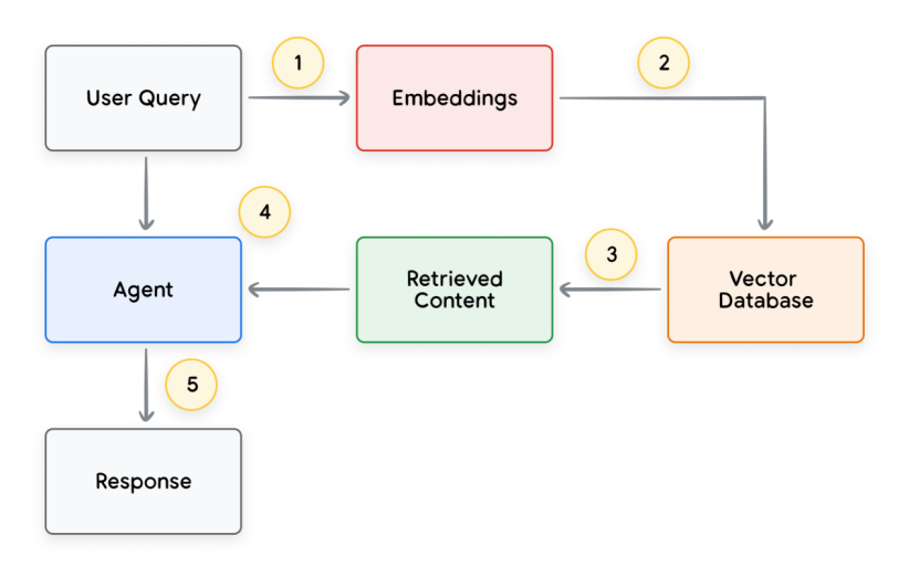 最终的结果是,应用程序允许智能体通过向量检索,将用户查询与已知的数据存储内容匹配,检索原始内容,并将其提供给编排层和模型以进行进一步处理。下一步操作可能是向用户提供最终答案,或执行额外的向量检索以进一步优化结果。