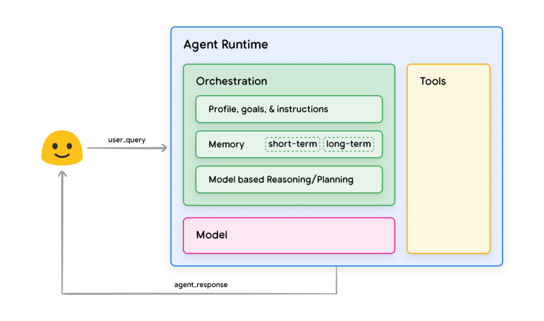 2025 年伊始,谷歌团队最新发布《AI 智能体白皮书》,给出了他们自己的定义:将推理、逻辑和访问外部信息的结合,并与生成式 AI 模型相联系,就是所谓的「AI 智能体」。