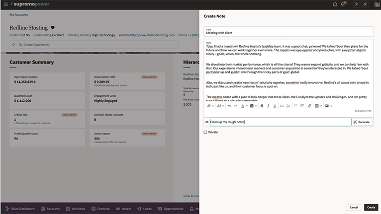 销售流程已经变得过于复杂,涉及很多的日常行政工作和复杂任务,导致销售团队很难有时间与客户进行有效和有意义的沟通。Oracle Cloud Sales 中新的 AI agent 和生成式 AI 功能消除了许多僵化和耗时的任务,使销售团队能够提高生产力,并与客户建立更有影响力的关系。