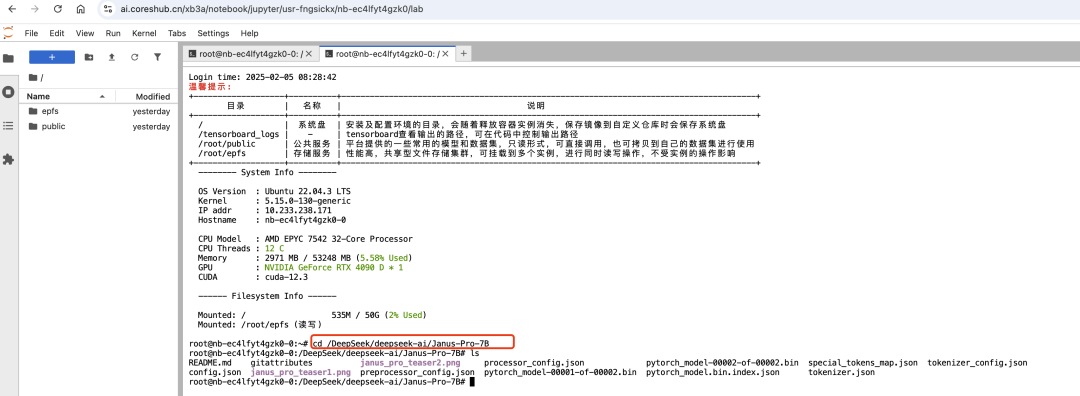 说明:连接开发环境,模型文件位置 DeepSeek/deepseek-ai/Janus-Pro-7B