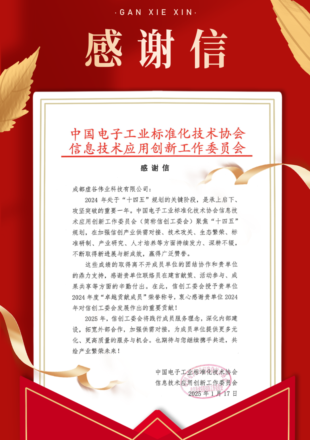 来自信创工委会的感谢信
