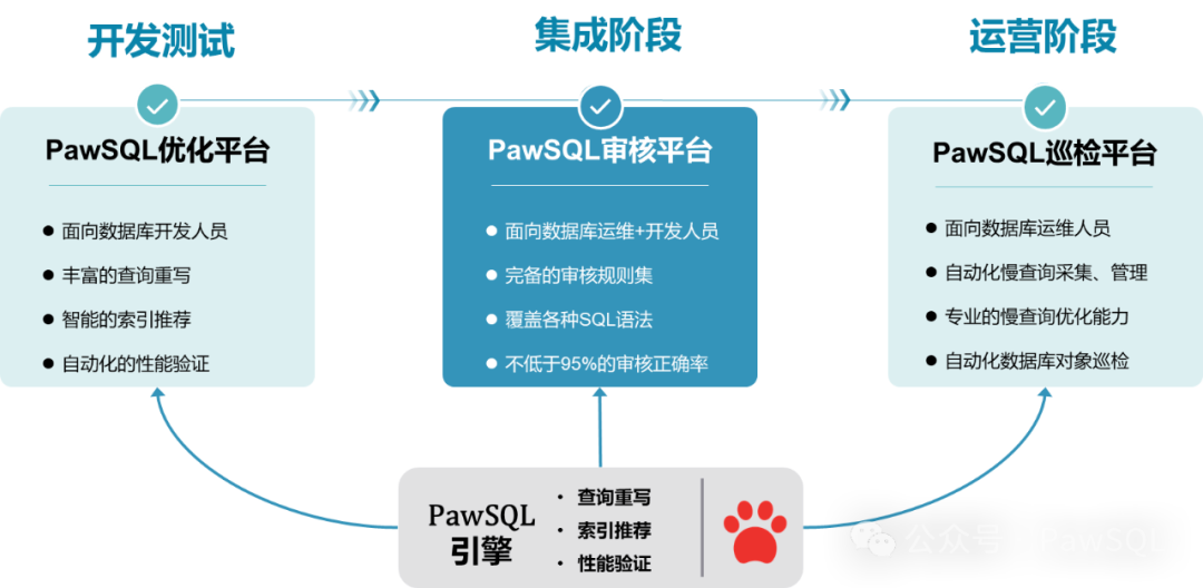 PawSQL专注于数据库性能优化自动化和智能化,提供的解决方案覆盖SQL开发、测试、运维的整个流程,广泛支持包括KingbaseES 在内的多种主流商用和开源数据库,为开发者和企业提供一站式的创新SQL优化解决方案。有效解决了数据库SQL性能及质量问题,提升了数据库系统的稳定性、应用性能和基础设施利用率,为企业节省了大量的运维成本和时间投入。