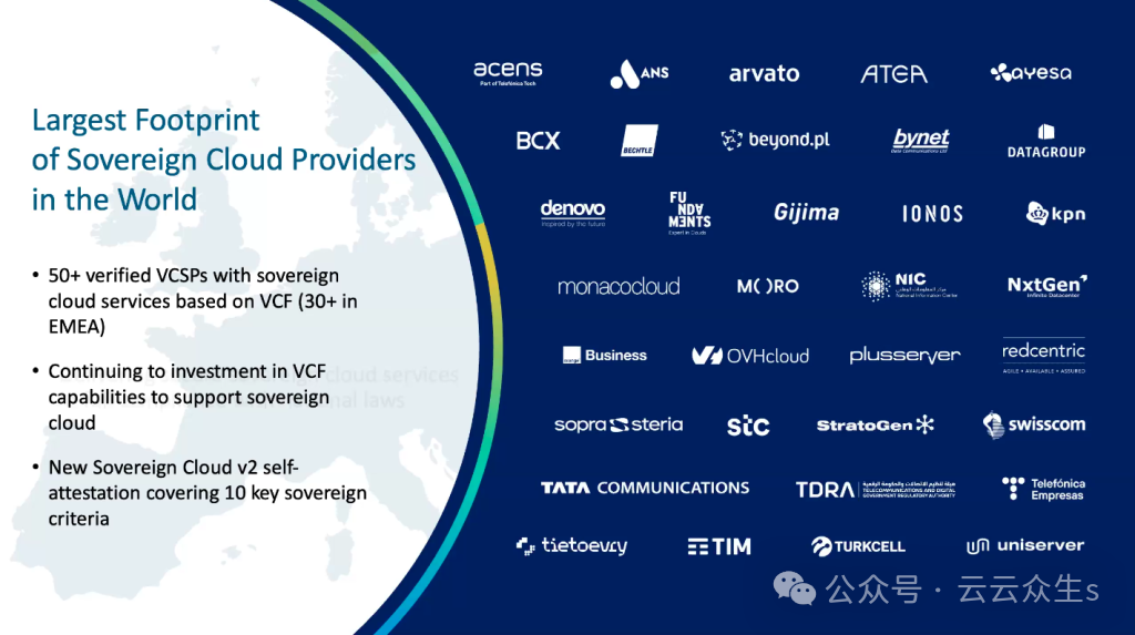 最后,从主权云的角度来看,主权云计划正在扩展到全球 50 多个云服务提供商合作伙伴,其中包括欧盟内部的 30 个。这些合作伙伴提供主权云和 AI 服务,并投资于 VCF 功能以满足主权要求和服务产品证明,Shenoy 表示。