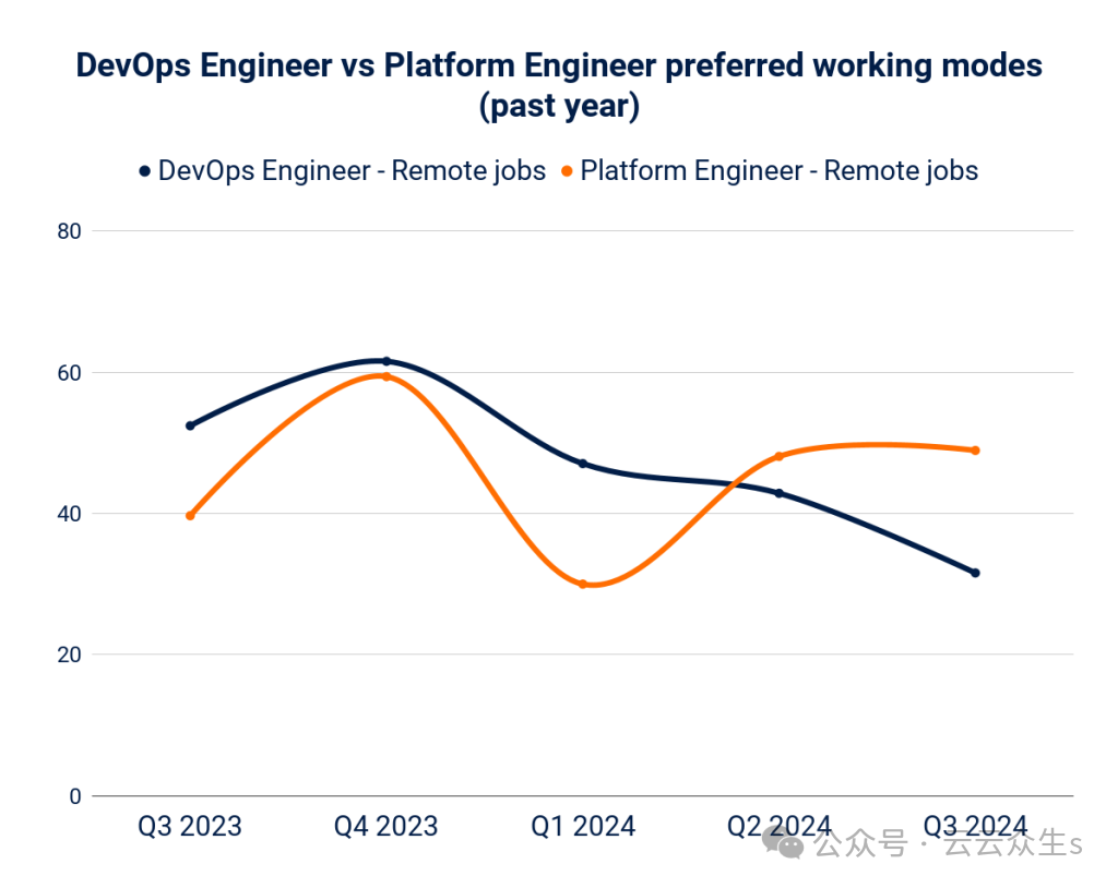 因此,平台工程师职位比 DevOps 职位更偏向远程办公 17%。