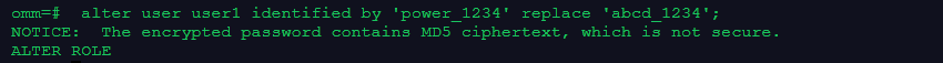 \du+ alter user user1 identified by 'power_1234' replace 'abcd_1234';