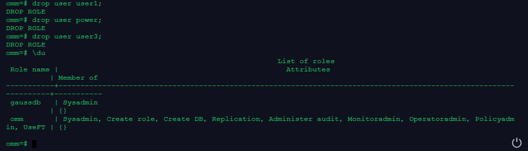 drop user user3;