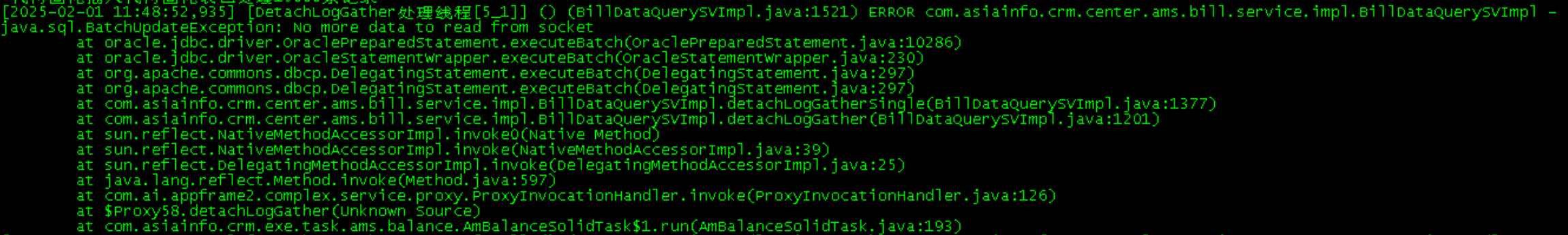 月初值班的时候应用反馈跑报表有报错,某个进程出现 No more data to read from socket错误: