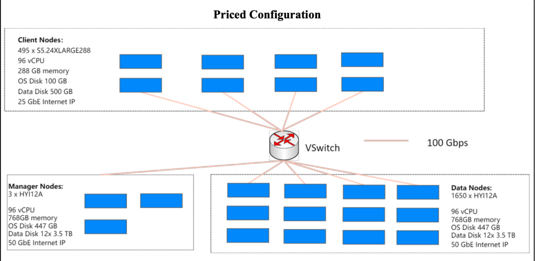 腾讯云 TDSQL的整体打榜架构如下图。其中数据节点的配置为 96 vCPU和768G内存。