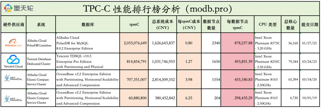 在过年期间忽略了阿里云 PolarDB 创造的新的世界纪录,直到春节后才注意到。阿里云的记录提交日期是2025年1月27日,也就是节前的最后一个工作日。应该是为春节准备的献礼发布,但是忽略了很多人的提前放假,没有第一时间引发关注和传播。