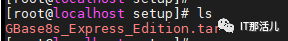 [root@localhost ~]# mkdir install[root@localhost ~]# cd install[root@localhost install]# tar -xf /setup/GBase8s_Express_Edition.tar[root@localhost install]# ls -lrt
