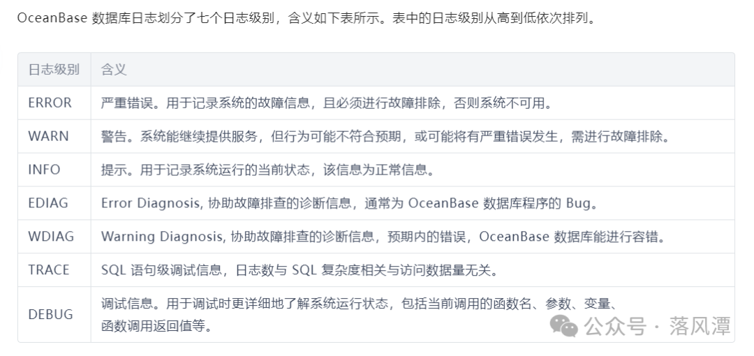 OB系统日志文件主要分三类,默认打印INFO级别以上的日志。