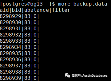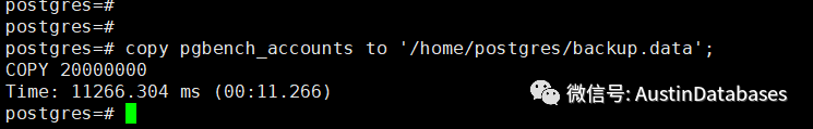 copy pgbench_accounts to '/home/postgres/backup.data';