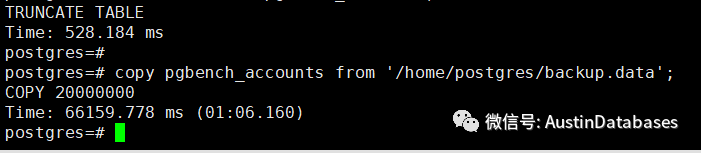copy pgbench_accounts from '/home/postgres/backup.data';