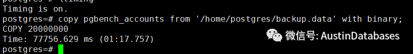copy pgbench_accounts from '/home/postgres/backup.data' with binary;