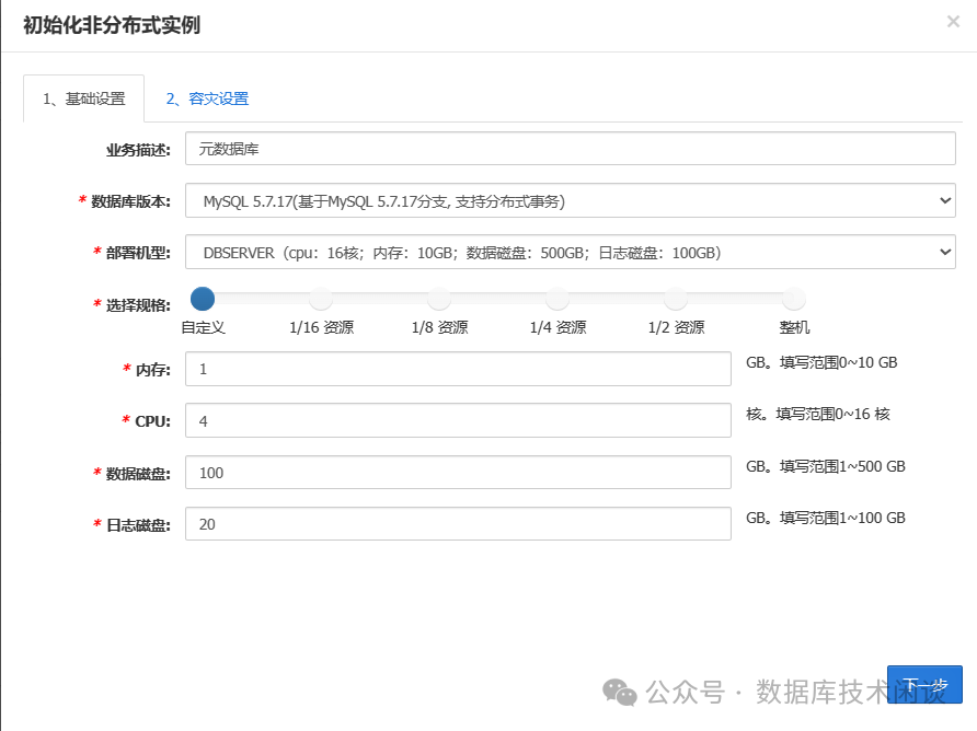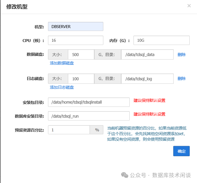 赤兔运维思路也是先将数据库主机资源管理起来,这里需要自己指定机型信息,包括数据目录、日志目录(指binlog