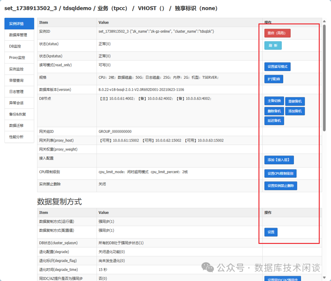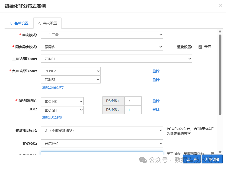 这里可以设置实例的备库数量,以及强同步,备库所处的机房信息等。
