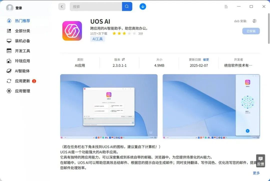 若您正在使用 deepin 23,可从应用商店更新 UOS AI 至最新版。