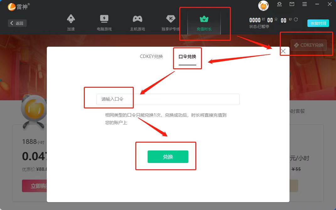 雷神游戏加速器还推出了口令兑换码为新老用户谋福利,使用兑换码可即可领取免费时长,客户端内全部3000多款海内外游戏,统统都能免费加速体验。